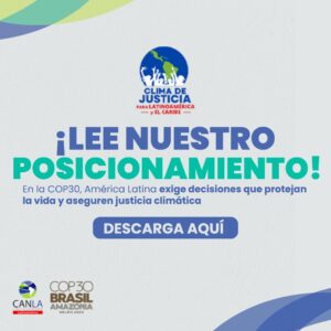 Posicionamiento de CANLA para la COP30 noviembre 7, 2025 No hay comentarios En un contexto de crisis global y creciente emergencia climática, Climate Action Network América Latina (CANLA) presenta su posicionamiento oficial para la COP30 en Belém, Leer más »