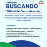 Climate Action Network Latinoamérica (CANLA) busca incorporar un/a Oficial de Comunicación para fortalecer su posicionamiento regional y amplificar las agendas de justicia climática en América